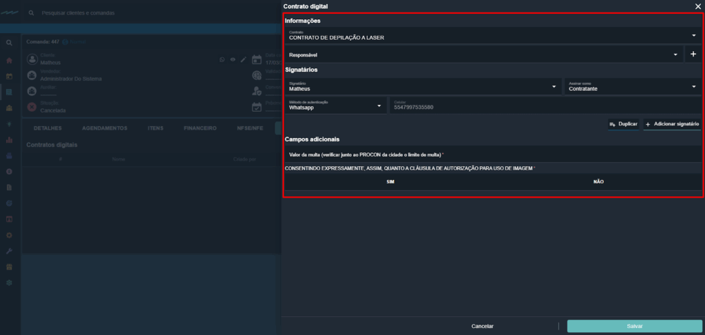 Após garantir que o cadastro do cliente está atualizado, siga os próximos passos para gerar o contrato digital: