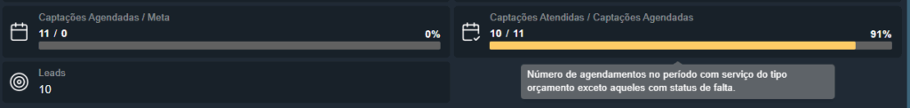 Além disso, também são exibidas informações sobre captações agendadas e leads cadastrados.