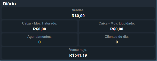 - Agendamentos para o dia (serviços a serem realizados)