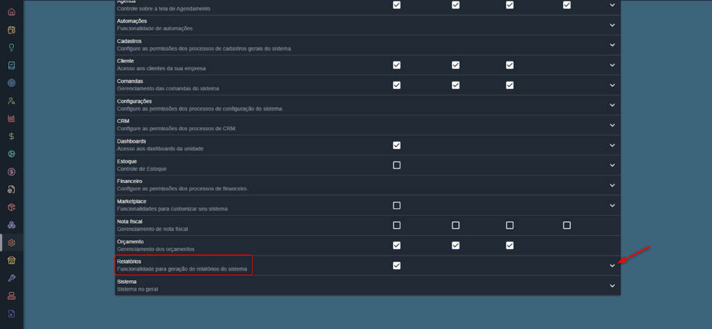 Para que o colaborador tenha acesso a esses relatórios, é necessário que o franqueado libere a permissão em: