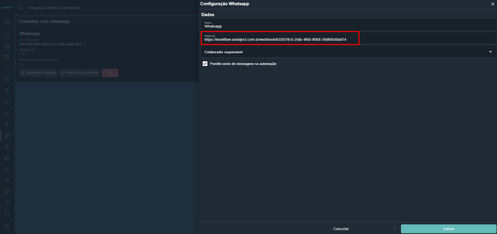 - Webhook para colar: https://workflow.unobject.com.br/webhook/b33078c5-2fa6-4f68-9068-39df0b56dd74