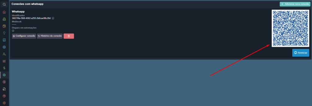 Lembrando que para conectar o WhatsApp ao sistema, basta ler o QR code apresentado na tela.