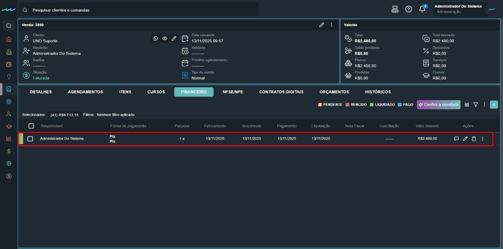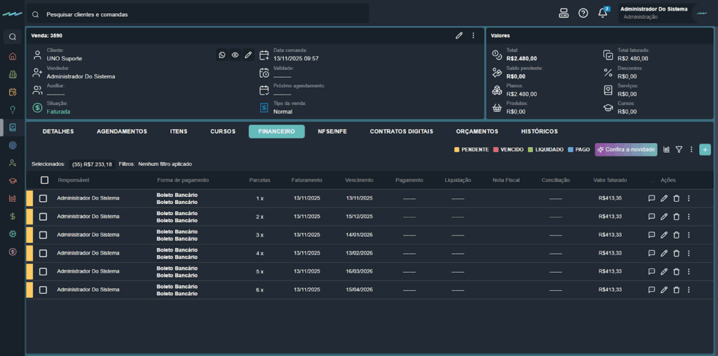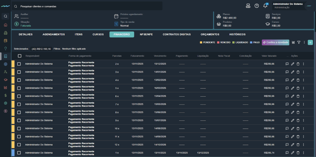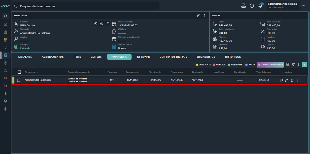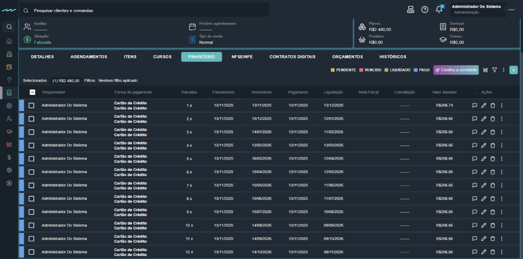 - Fixar data de pagamento em todas as parcelas: define a mesma data de pagamento para todas as parcelas.