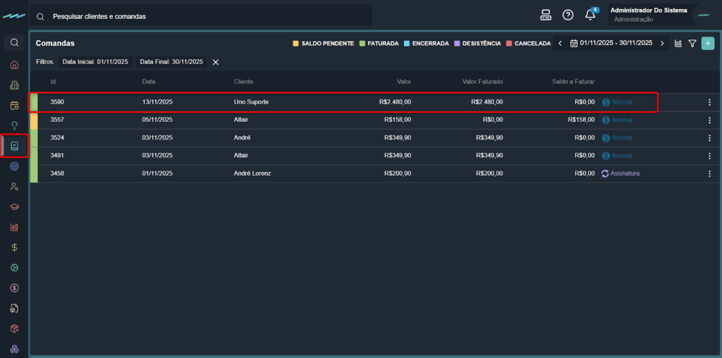 - Menu Lateral > Comandas