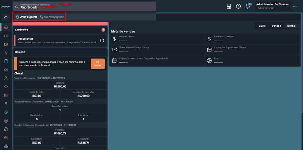 - Pesquise o nome do cliente na barra de busca.