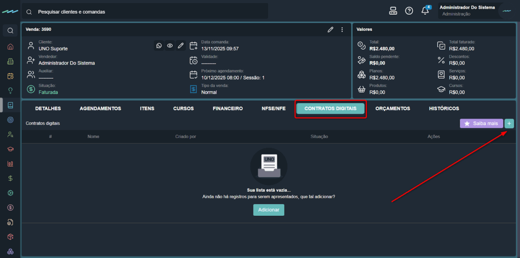 Para gerar o contrato digital, é essencial estar dentro da venda (comanda) do cliente. Veja abaixo o passo a passo: